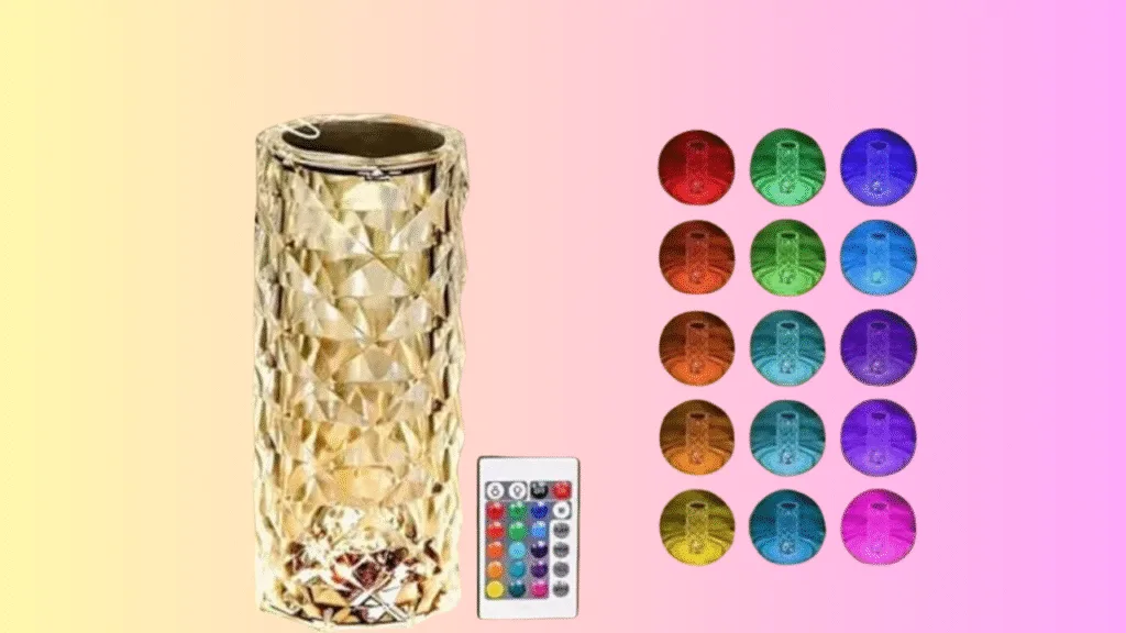 An elegant crystal-finish lamp that softly glows in RGB colors, perfect for setting a cozy or romantic mood at the touch of your fingers.