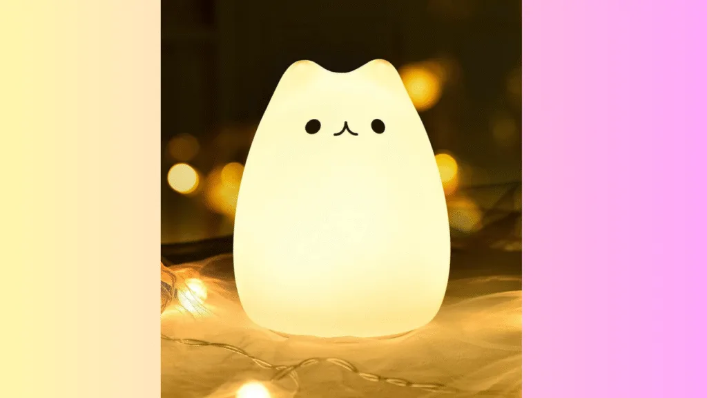 A charming kitty-shaped silicone night lamp that emits a warm, soft glow, adding a playful touch to your space.